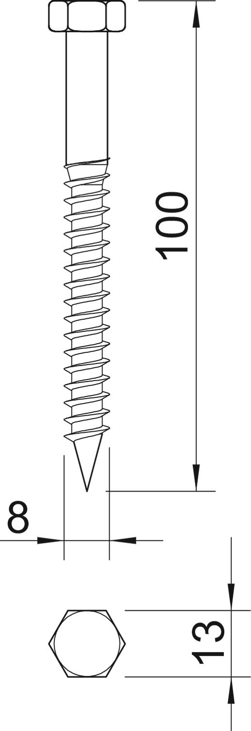 Cote D 8 mm Cote L 100 mm Diamètre de tige 8 mm Dimension 8x100mm Empreinte CO2 (GWP) du berceau à la porte 0,0776 kg CO2e / 1 Pièce Forme de la tête hexagonale Longueur 100 mm Matériau Acier Méplat 13 Surface galvanisé Système à visser Hexagon head - Tous les types