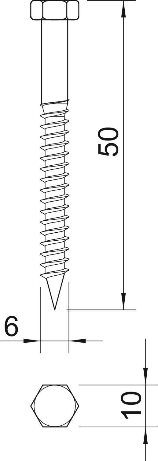 Cote D 6 mm Cote L 50 mm Diamètre de tige 6 mm Dimension 6x50mm Empreinte CO2 (GWP) du berceau à la porte 0,0241 kg CO2e / 1 Pièce Forme de la tête hexagonale Longueur 50 mm Matériau Acier Méplat 10 Surface galvanisé Système à visser Hexagon head - Tous les types
