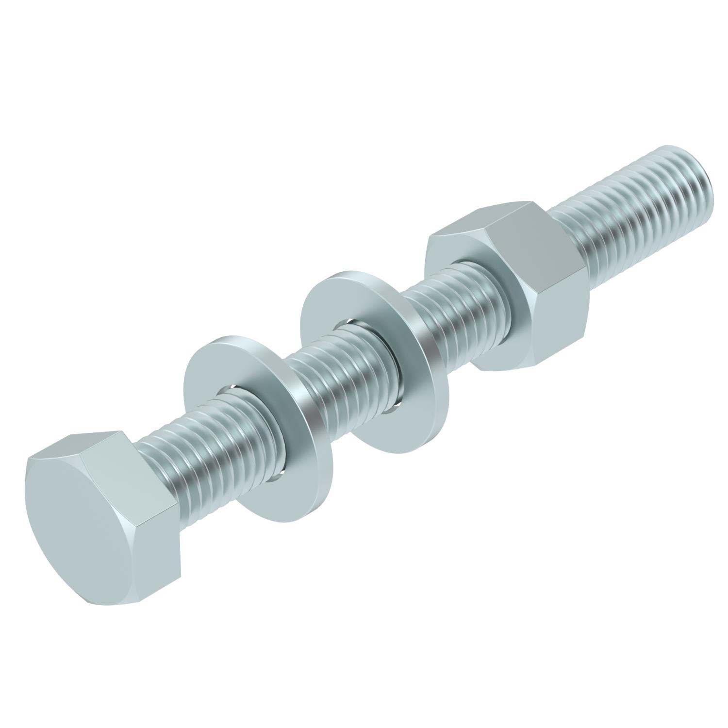 Description du produitVis à tête hexagonale avec écrou, rondelle large et rondelle éventail.