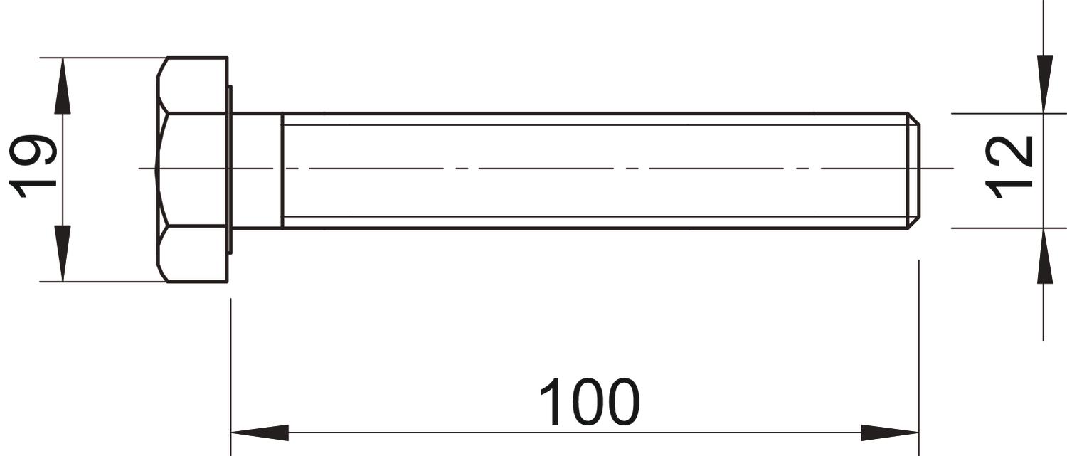 Autobloquant non Avec bride non Avec écrou non Avec rondelle non classe de résistance 8.8 Cote d 12 mm Cote L 100 mm Dimension M12x100 Empreinte CO2 (GWP) du berceau à la porte 0,215 kg CO2e / 1 Pièce Filetage M12 Filetage gauche Non Filetage plein oui Filetage, métrique 12 Longueur 100 mm Longueur de filetage 100 mm Matériau Acier Méplat 19 Surface Lamelle de zinc Système à visser hexagonale Type de filetage métrique - Tous les types