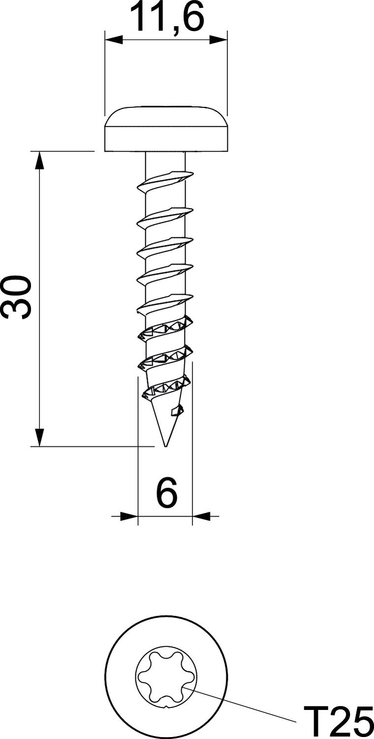 Cote d 6 mm Cote D 11,6 mm Cote L 30 mm Couleur zinc Diamètre du filetage ST 6 Dimension 6x30 Forme de la tête autres Matériau Acier Surface galvanisé, passivé transparent Système à visser Torx - Tous les types