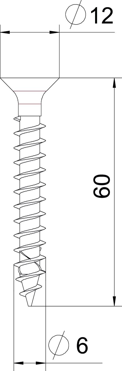 À deux filets non Cote D 6 mm Cote L 60 mm Diamètre de la tête 12 mm Dimension 6x60mm Dimension d'entraînement TX 25 Forme de la tête Tête fraisée Longueur 60 mm Matériau Acier inoxydable Surface nu, traité Système à visser Torx trempé non - Tous les types