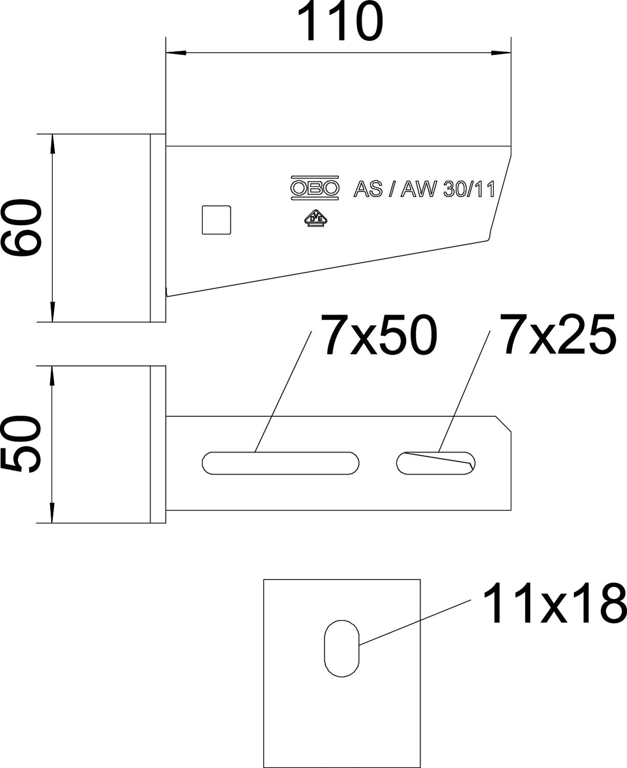 Les consoles d'une largeur comprise entre 110 et 160 mm sont munies d'un trou de fixation de 11 x 18 mm, alors que les consoles de 210 à 610 mm de large comportent un trou de fixation de 13 x 20 mm. Pour le montage des consoles d'une largeur inférieure à 400 mm sur des montants en U, il convient d'utiliser, en fonction du profilé, un boulon TRCC ou une vis à tête hexagonale. À partir d'une largeur de 500 mm, la console est fixée à travers les deux longerons du montant en U à l'aide de vis à têtes hexagonales. Il est bien sûr nécessaire d'utiliser l'entretoise adaptée, en fonction du profilé. Le revêtement de surface est réalisé à l'aide d'un procédé de trempe unique et doté de couches de zinc de très grande épaisseur.