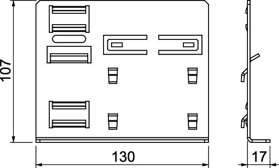 Couleur zinc Dimension 130x107x17mm Empreinte CO2 (GWP) du berceau à la porte 0,7393 kg CO2e / 1 Pièce Hauteur 17 mm Largeur 107 mm Longueur 130 mm Matériau Acier Modèle Montage au mur Montage en goulotte accrocher et visser pour dimension de goulotte 70x110 Surface galvanisé par bande Type de fixation encliquetable - Tous les types