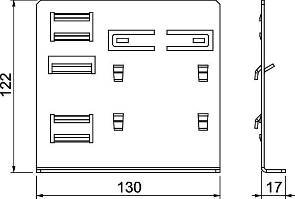 Couleur zinc Dimension 130x122x17mm Empreinte CO2 (GWP) du berceau à la porte 0,926 kg CO2e / 1 Pièce Hauteur 17 mm Largeur 122 mm Longueur 130 mm Matériau Acier Modèle Montage au mur Montage en goulotte accrocher et visser pour dimension de goulotte 70x130 Surface galvanisé par bande Type de fixation encliquetable - Tous les types
