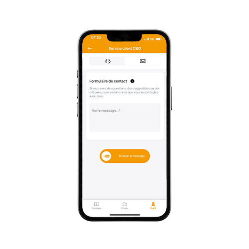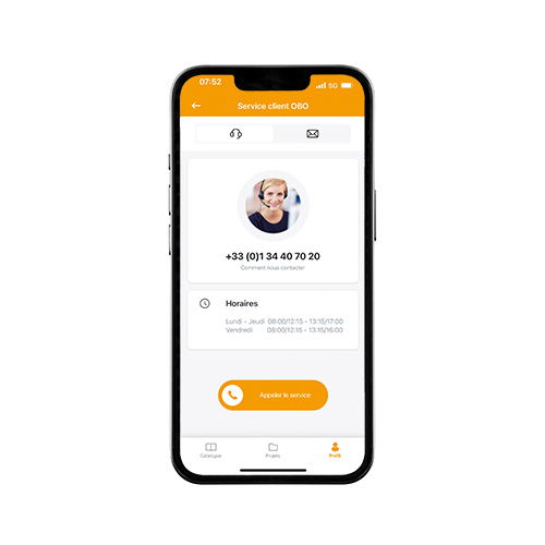 Vous êtes en déplacement ? Le Scan produits vous permet d’accéder aisément à toutes les informations concernant un produit OBO depuis votre chantier : il suffit de scanner le code-barres du produit pour accéder aux données techniques, instructions de montage, fiches techniques, certificats et bien plus encore.