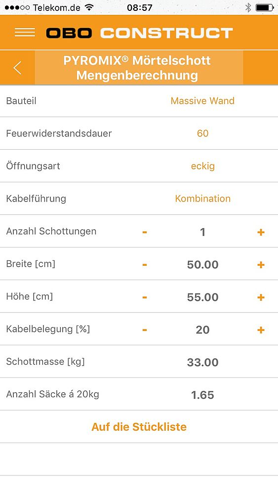 L'application vous permet de déterminer rapidement et aisément les produits adaptés aux exigences du projet. Grâce à des questions ciblées, vous êtes guidé progressivement vers les produits appropriés et pouvez déterminer immédiatement le matériau coupe-feu nécessaire. Il ne vous reste plus qu'à ajouter les produits et accessoires nécessaires à une liste aide-mémoire à envoyer par e-mail.
