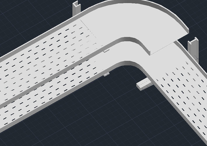 Grâce au plugin gratuit pour AutoCAD, des modèles 3D de chemins de câbles OBO et matériel de montage peuvent être intégrés à des schémas existants. Les éléments créés peuvent également être gérés depuis des ordinateurs sur lesquels OBO Construct KTS CAD n'est pas installé. Les schémas et les éléments créés peuvent ainsi être échangés et modifiés sans problème. Les utilisateurs peuvent à tout moment générer une liste des pièces claire, contenant tous les éléments OBO utilisés.