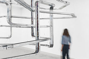 Before the current exhibition in Zurich, Eva and Franco Mattes exhibited the RKS-Magic cable trays internationally in Los Angeles, Milan, Montreal and Berlin. In the installation, the cable trays not only stand out through their design and elegance but also through their high level of flexibility and stability.