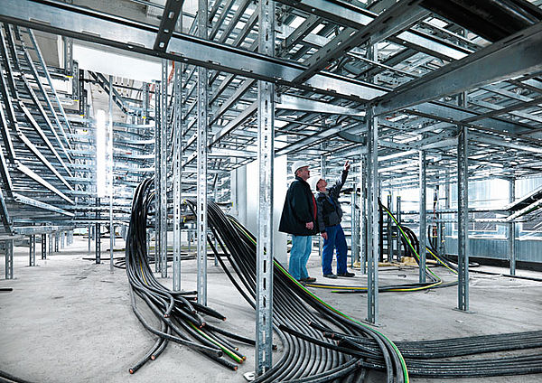 Pour que l'installation puisse fonctionner de manière optimale, un nombre incalculable de câbles électriques et de conduits doivent être acheminés d'un bâtiment à l'autre. C'est pourquoi OBO monte actuellement des Systèmes de support de câbles dans le bloc E, dans les annexes et dans les postes de sectionnement pour les blocs E et D. Environ 65 000 mètres de systèmes d'échelles à câbles et 7 000 mètres de systèmes d'échelles verticales au total devraient être livrés par OBO à Hamm-Uentrop. Et ces chiffres pourraient encore fortement augmenter, car l'appel d'offres pour l'équipement des installations de chaudières est toujours en cours.