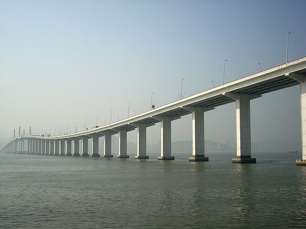 Huit ans de construction, 55 kilomètres de long, 40 000 véhicules chaque jour, 420 000 tonnes d'acier, des coûts de 14 milliards d'euros environ et une liaison entre Hong Kong, Zhuhai et Macao : tel est le projet gigantesque chinois qui relie plusieurs ponts, un tunnel et des îles artificielles sur le delta de la rivière des Perles. De cette manière, les terres chinoises resserrent les liens avec les mégapoles de Hong Kong et Macao.